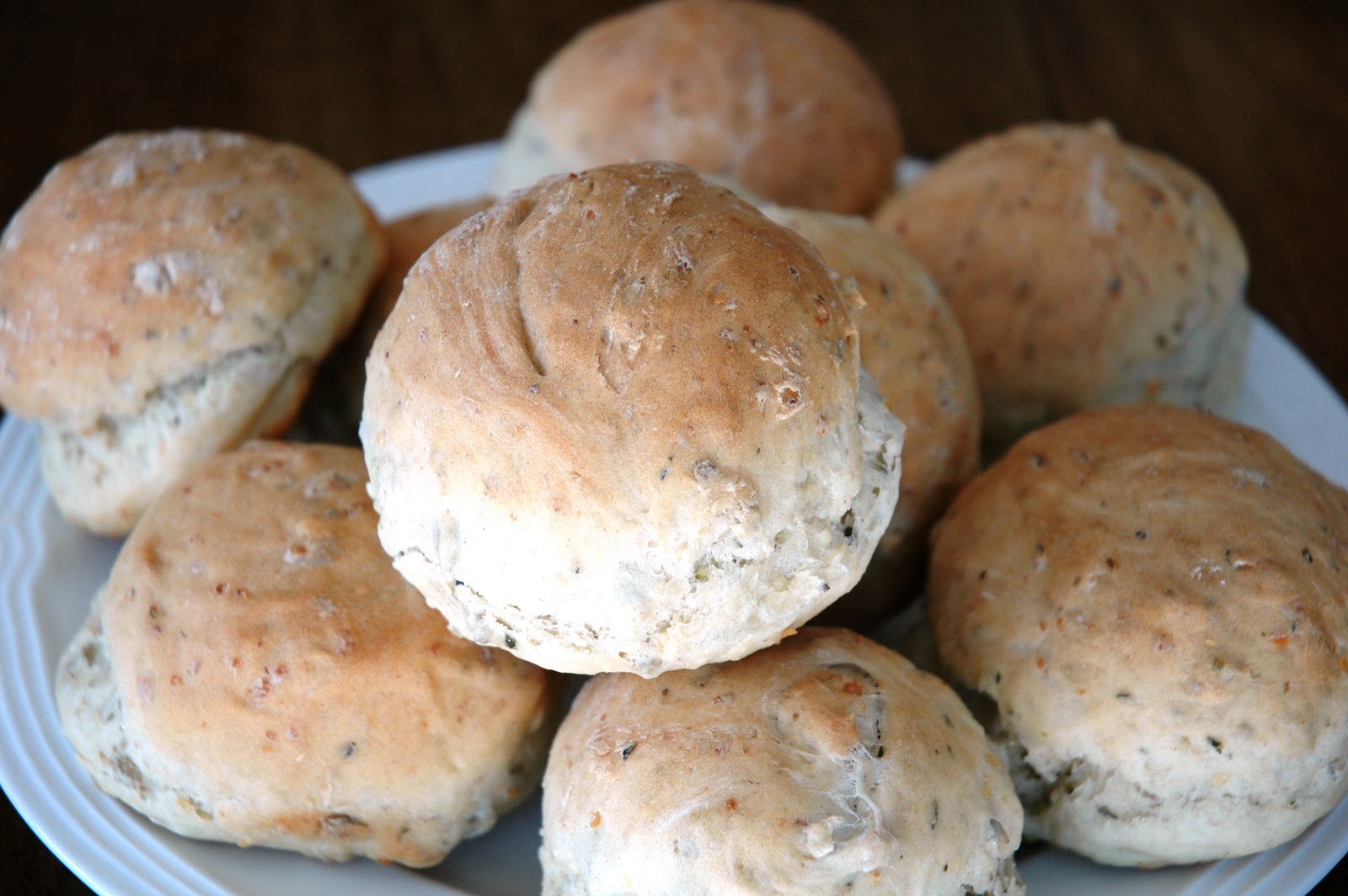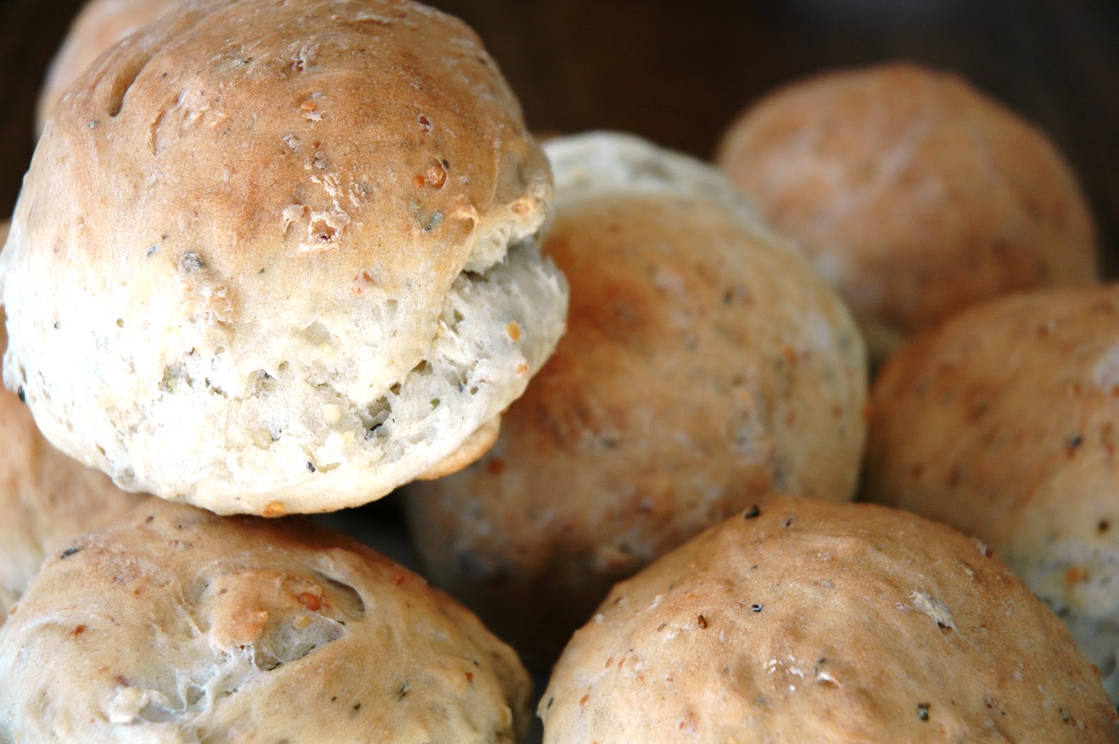Formujemy sredniej wielkosci bulki i ukladamy na blaszce wysmarowanej olejem. Piec 10 min – 400F, potem zmniejszyc na 380 F i piec jeszcze okolo 30-35 min.