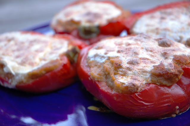 Ugotowana soczewice doprawic ostra papryka, sola i pieprzem, dodac koncentrat i kolendre. Dobrze wimieszac. Papryke przeciac na polowe, wyciagnac pestki i nakladac przygotowany farsz. Jesli uzywamy ser ulozyc go na wierzchu i posypac jeszcze papryka .Piec okolo 25-30 min w 400F.